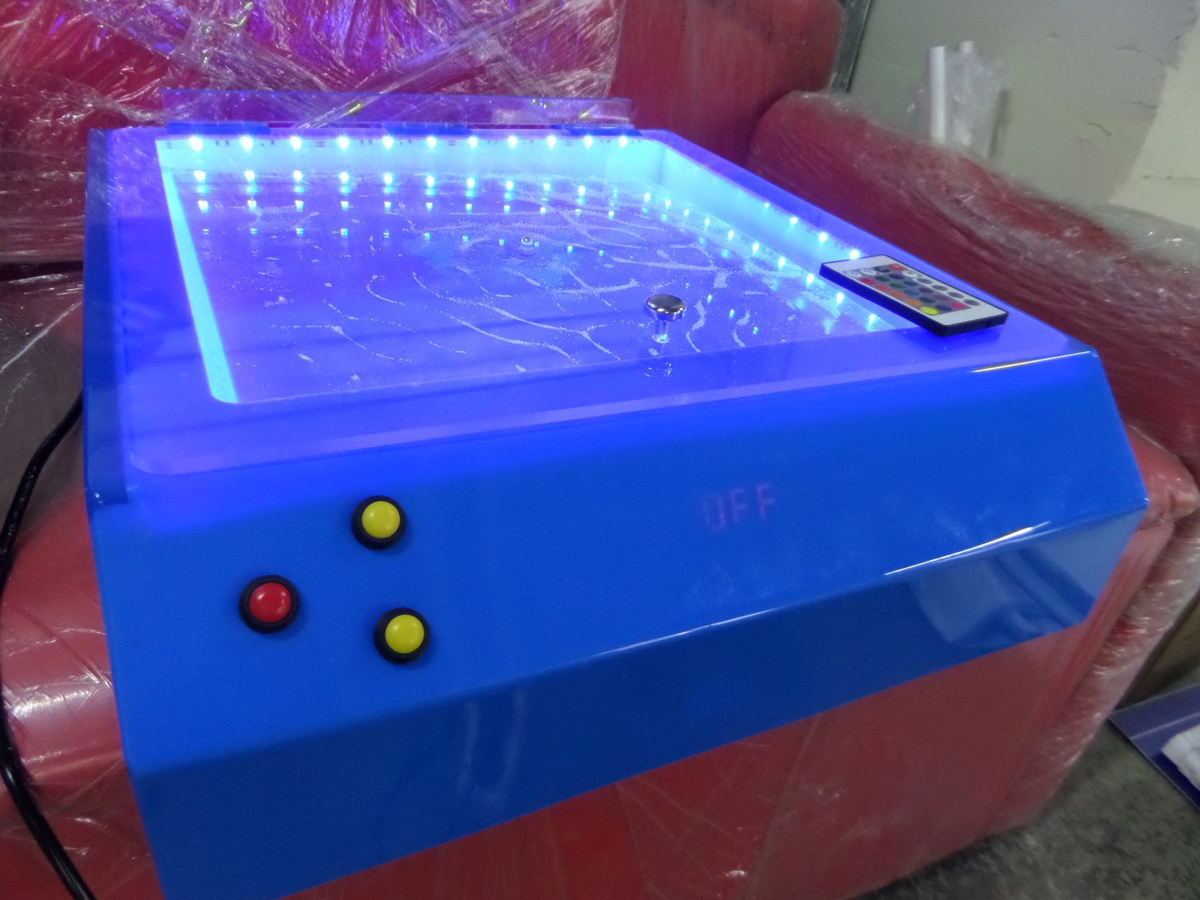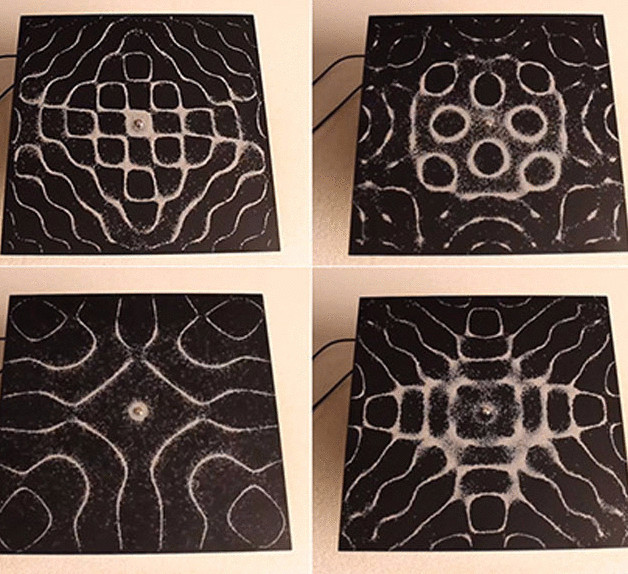 Пользователь открывает крышку корпуса, из лотка на пластину насыпает песок и закрывает крышку. Под действием вибрации на поверхности пластины образуются различные фигуры.