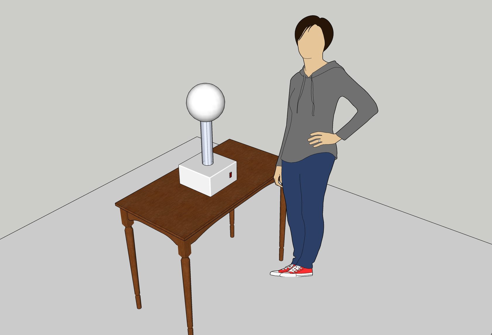 Нажав на кнопку посетитель видит плазменную дугу, поднимающуюся между двух электродов за счет выделяющегося тепла.